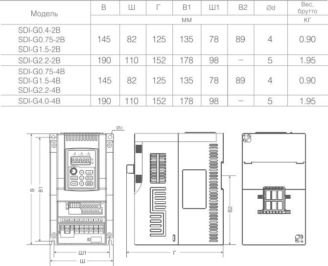 | SDI-G0.75-4B | 3,4 | 2,3 | 0,75 | Встроен в стандартной конфигурации |